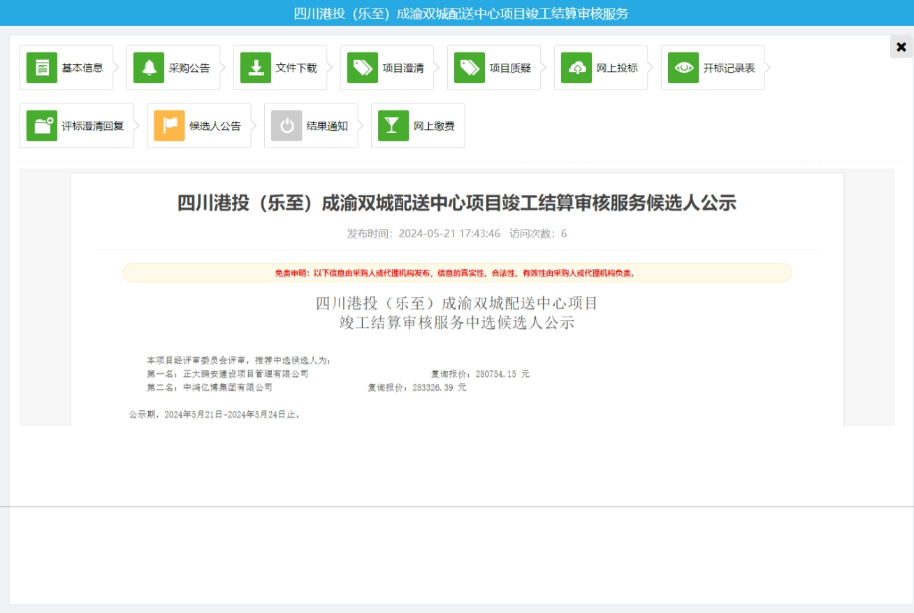 正大鵬安中標(biāo)四川港投(樂(lè)至)成渝雙城配送中心項(xiàng)目竣工結(jié)算審核服務(wù)