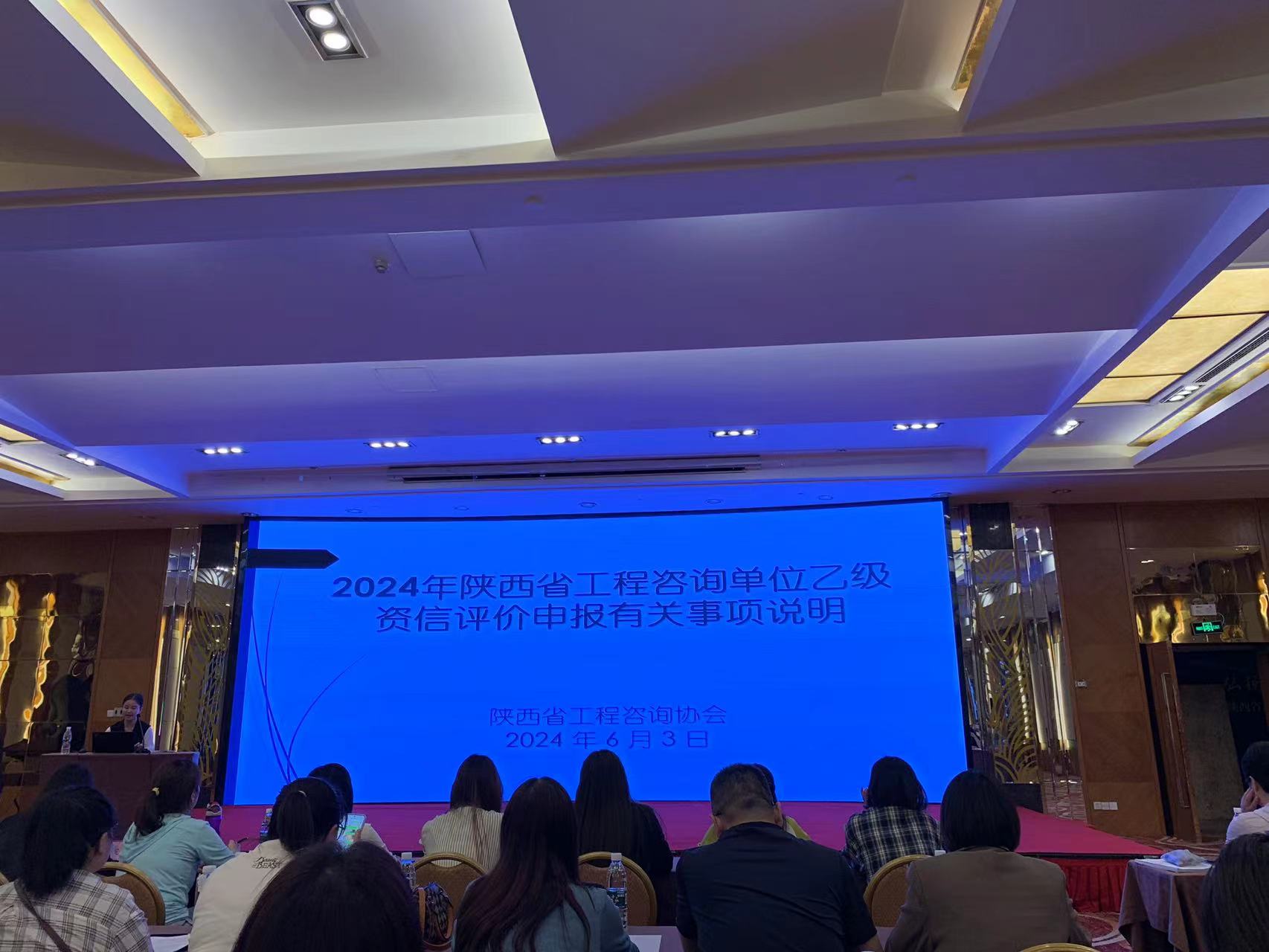 2024年6月3日下午14點30分,陜西省工程咨詢協(xié)會舉辦乙級資信評價培訓(xùn)工作會議,正大鵬安公司線下參加本次會議。