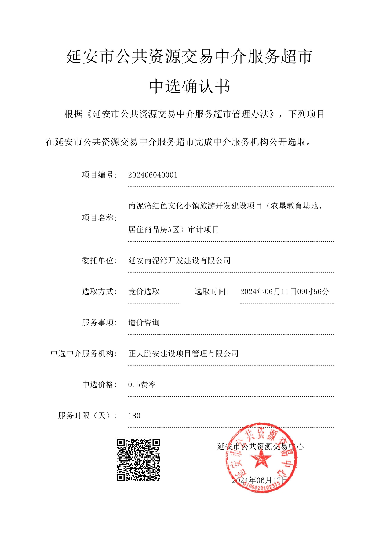 正大鵬安中標(biāo)延安南泥灣紅色文化小鎮(zhèn)旅游開(kāi)發(fā)建設(shè)項(xiàng)目(農(nóng)墾教育基地、居住商品房A區(qū))審計(jì)項(xiàng)目