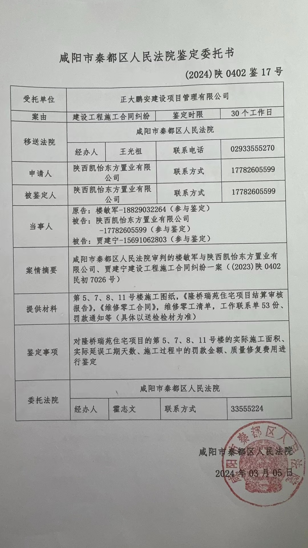 項目名稱:樓敏軍與陜西凱怡東方置業(yè)有限公司、賈建寧建設(shè)工程施工合同糾紛一案