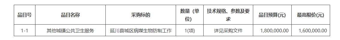 延川縣城區(qū)病媒生物防制工作競爭性磋商公告