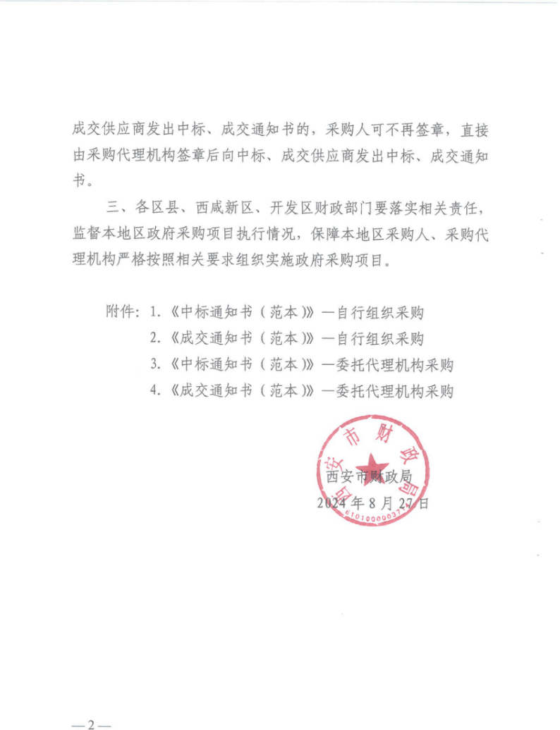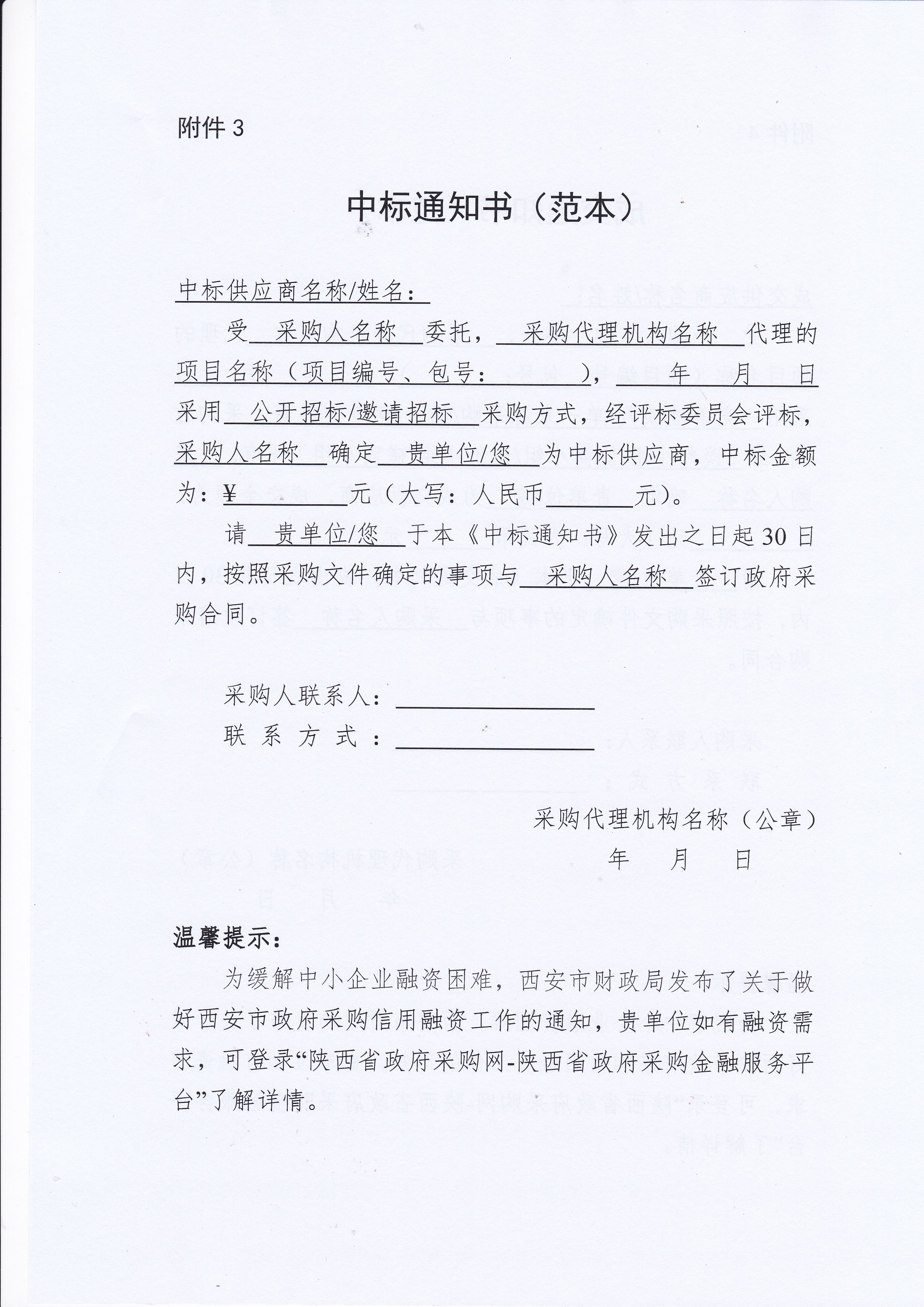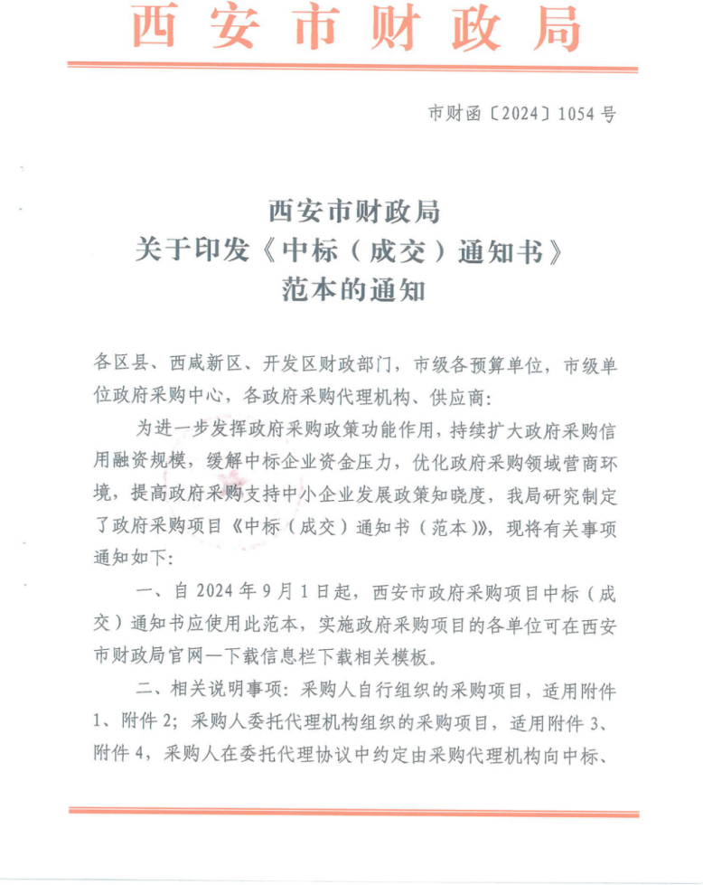 西安市財(cái)政局關(guān)于印發(fā)《中標(biāo)(成交)通知書》范本的通知