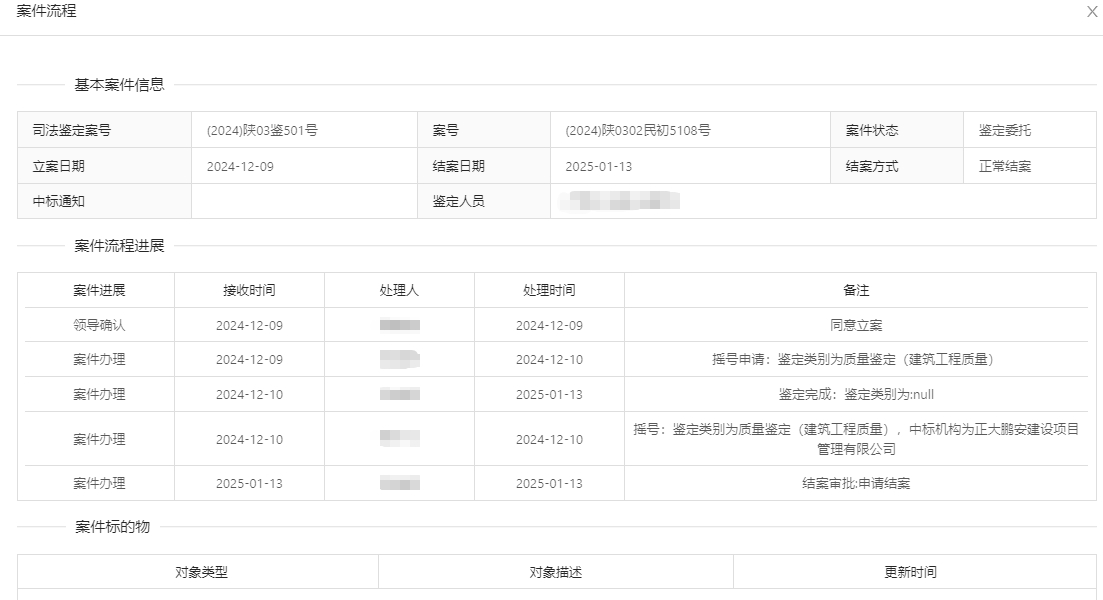 2024年11月26日,經寶雞市中級人民法院確認,正大鵬安建設項目管理有限公司中標“原告蔡明與被告王麗莉、寶雞市世邦物業(yè)管理有限公司、白浪關于房屋漏水原因”質量司法鑒定項目。