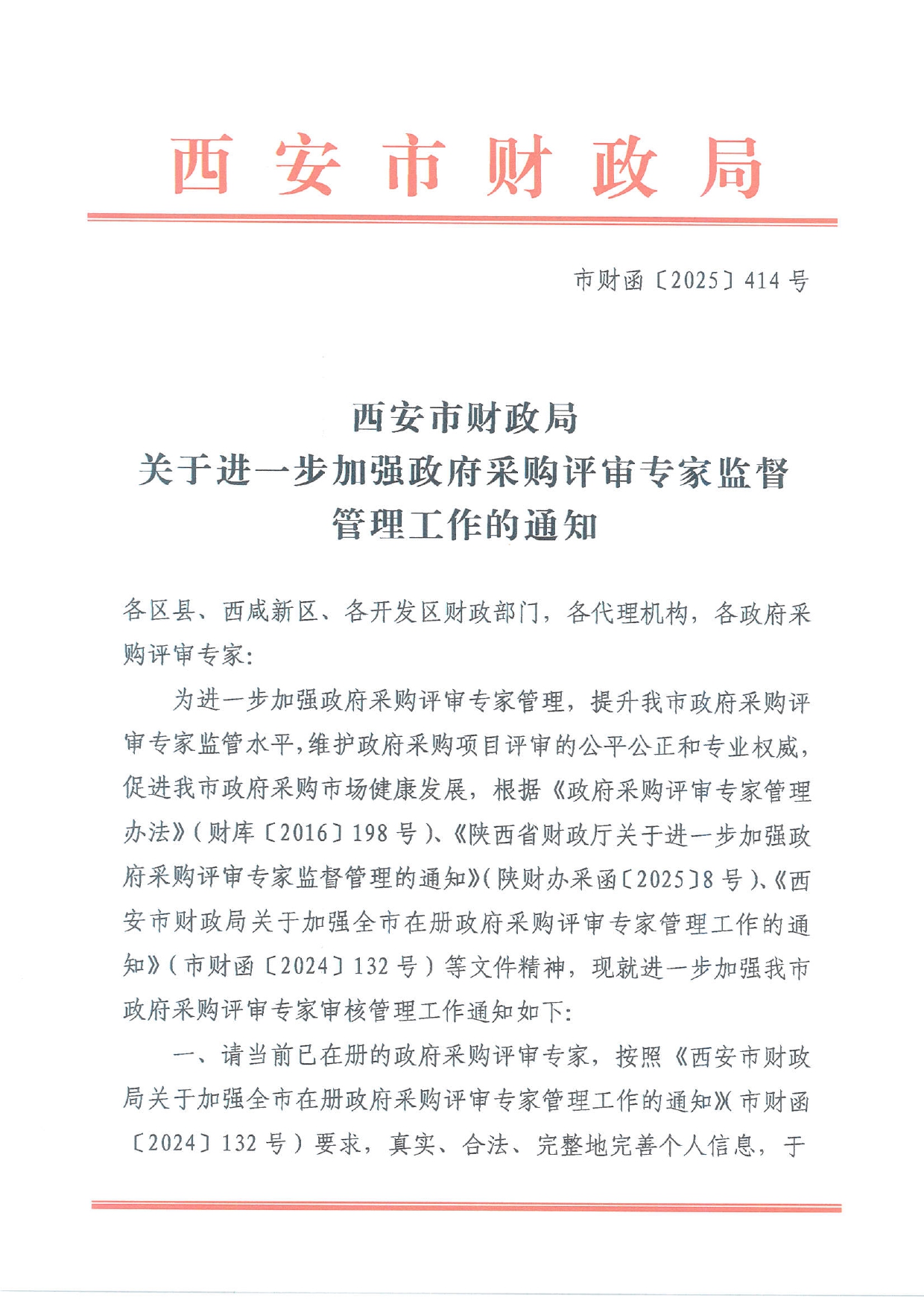 西安市財(cái)政局關(guān)于進(jìn)一步加強(qiáng)政府采購(gòu)評(píng)審專(zhuān)家監(jiān)督管理工作的通知