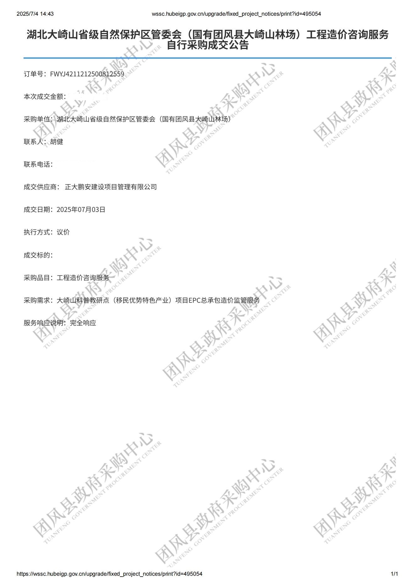 正大鵬安中標(biāo)湖北大崎山省級自然保護(hù)區(qū)管委會(國有團(tuán)風(fēng)縣大崎山林場)工程造價(jià)咨詢服務(wù)